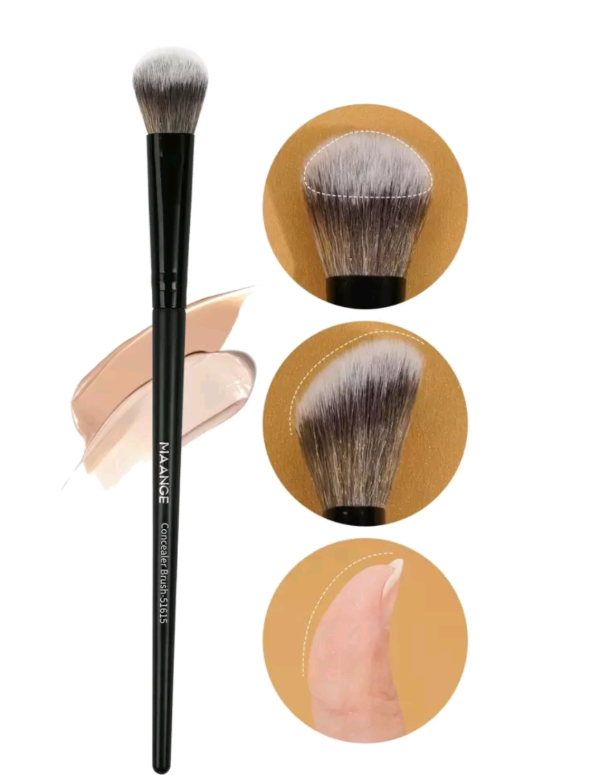 Brocha para difuminar corrector, marca Mangee. Su forma que simula la punta de los dedos deja un acabado natural y funde el producto con facilidad