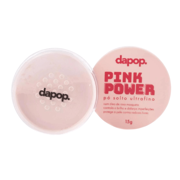 El polvo rosa de Dapop es un polvo facial suelto de color Rosa, con efecto translúcido y textura suave que se adapta a todos los tonos de piel.