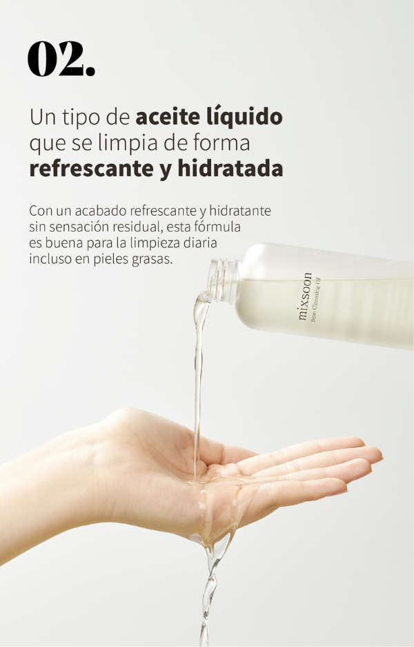 Textura de aceite líquido ligero que no deja residuos en la piel, dejándola fresca e hidratada después de su uso.